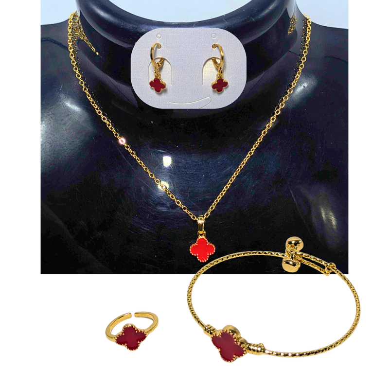 Inspiré du célèbre style Van Cleef, cet ensemble de bijoux enfant séduit par son motif trèfle rouge éclatant, symbole d’amour et de bonheur. Composé d’un collier, d’un bracelet et de boucles d’oreilles assorties et une bague, il apporte une élégance joyeuse à chaque tenue. Léger, sans danger et facile à porter, c’est le coffret idéal pour les petites filles qui aiment briller avec style.