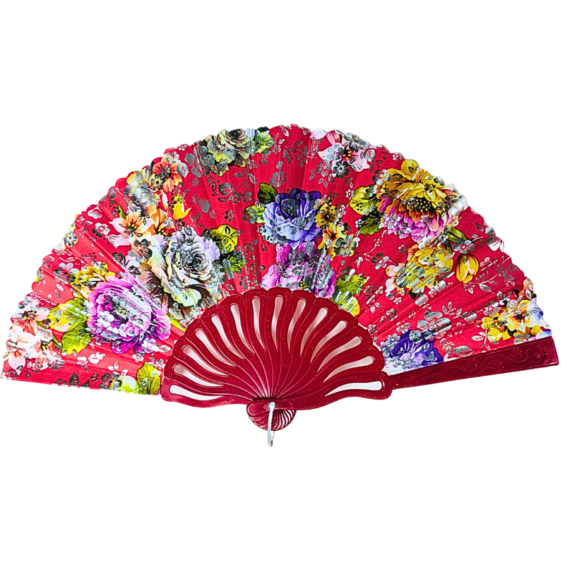 Éventail à motif fleur Rouge