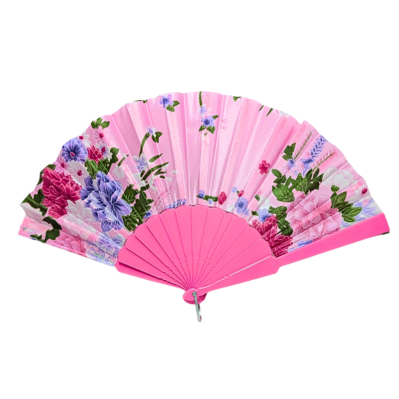 Éventail à motif fleur en Plastique rose