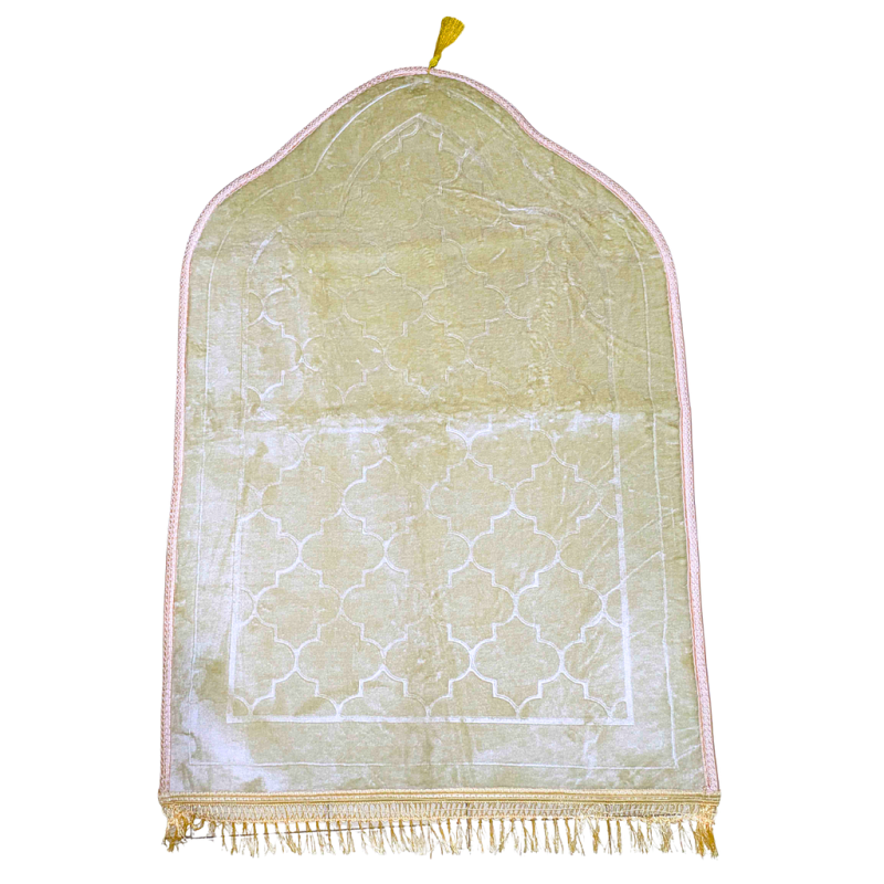 Le Tapis de Prière Seydina en Velours GM - Beige est un choix élégant et apaisant pour vos moments de prière. Conçu avec un velours doux et confortable, il offre une sensation agréable sous les pieds et un soutien optimal. Sa couleur beige claire, sobre et lumineuse, apporte une touche de calme et de sérénité à votre espace de prière, tout en s’adaptant facilement à divers décors.