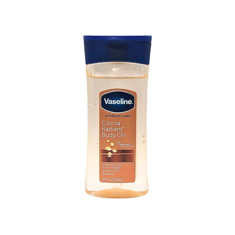 L'huile pour le corps Vaseline Cocoa Radiant revitalise la peau sèche et terne. Sa formule riche combine 100% pur cacao, du beurre de karité et d’huiles régénérantes pour une peau saine et éclatante. Elle contient des micro-gouttelettes cicatrisantes de gelée de vaseline qui retiennent l’hydratation pour aider à revitaliser la peau sèche.