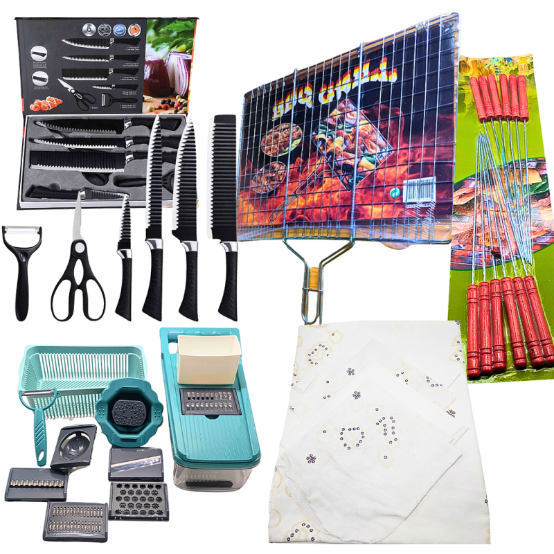 (1 pc) DOUBLE GRILLE BARBECUE RECTANGULAIRE MANCHE EN BOIS