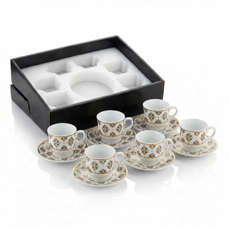 Ensemble 12P Tasses et Assiettes porcelaine à motifs Elisa 1